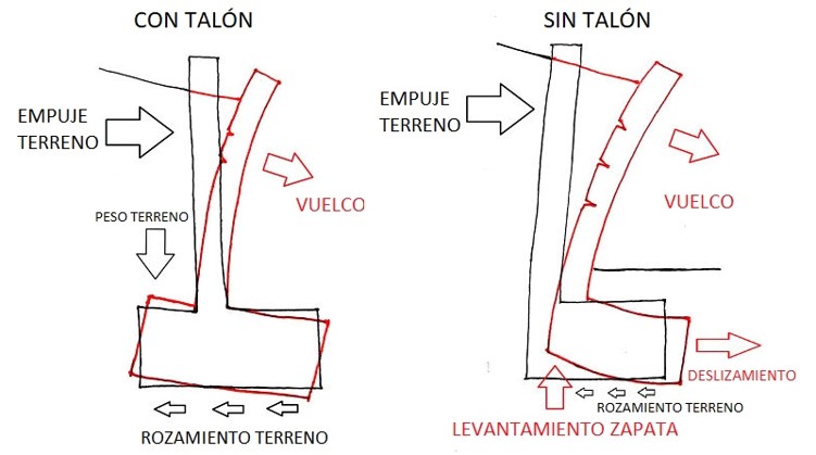 añade una base horizontal a modo de cimientos. El peligro de las contenciones