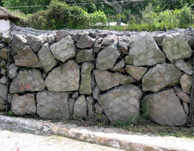 •Muros de gaviones. Otro de los tipos de muros de contención para una casa son los muros formados por gaviones, cada vez más extendidos. Los gaviones son rejas metálicas que forman recipientes que se llenan con piedras relativamente pequeñas.